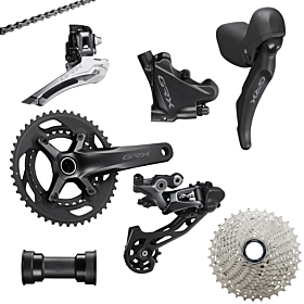 - Paire de leviers pour freins à disque : Shimano GRX ST-RX600 / BR-RX400 2x11v (leviers + durite 1000/1700 mm + étriers Flat Mount avec plaquettes)