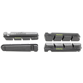 - Spécialement conçus pour les jantes carbone, ces patins s'utilisent également sur jantes en aluminium (penser à bien nettoyer le patin après un freinage sur jantes alu)